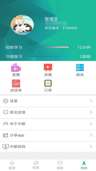 中鹏培训app最新版主要包含了考证、学历提升以及各种技能的培训服务,课程种类繁多,热门新鲜课程一应俱全,能够在线上直播课,也可以看自己感兴趣的录播课回放,可以查询成绩单,支持在线打卡和查看其他学员的动态。