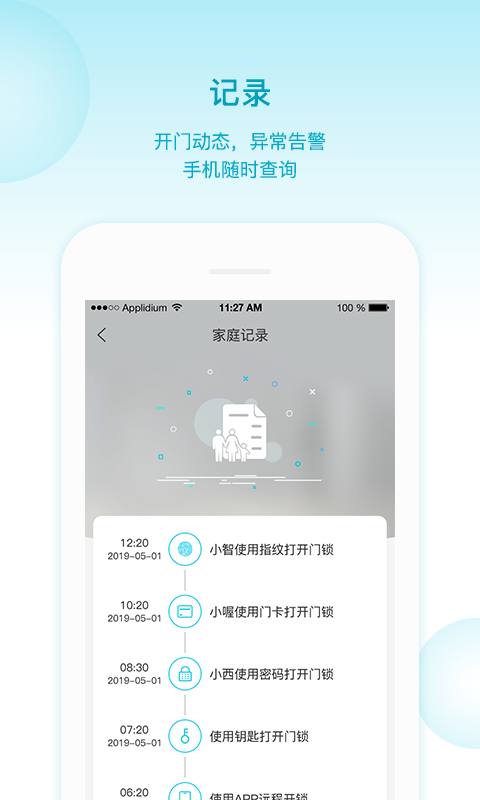 1.智能开锁,指纹管理、访问记录、紧急报警……智能服务应有尽有!