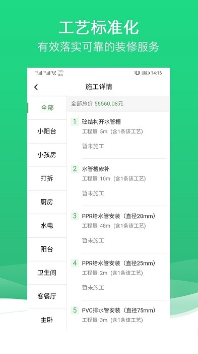 通过移动互联网,实现业主、材料和产品供应商、设计师、工长、工人和监理的互联互通,减少不必要的中间环节,真正实现全产业链整合。通过标准化的工艺、材料和流程控制,为用户提供成本合理、品质可靠的一站式家装服务。