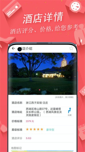 掌上景点是专门为旅游爱好者打造的免费旅游出行APP。旅游用户选择某个城市之后,该城市所有的景点会在地图上标记给用户。包含景点的门票信息、详细地址、人文历史等。掌上景点支持按城市维度搜索,支持全国407个地级市的景点数据查询。挑选您的目标城市,切换之后,该城市内的所有景区,我们在地图上都给您标记出来,方便安排您的出行。 同时,我们支持查询全国1100个城市的酒店信息、地理位置、评分数据等,为您的出行住宿,提供指导。当您选择感兴趣的景点之后,然后搜索景区周围的酒店, 我们将附近酒店在地图上也标记给您,让您合理选择。