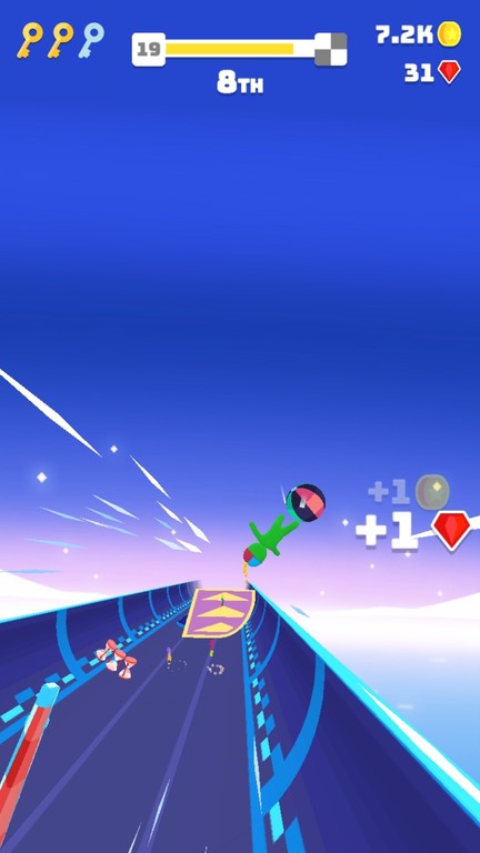游戏里有各种地形和道具可以使用,比如闪避对手或者击退他们,甚至还有DIY设计滑板的功能,完全可以打造属于自己的独特风格。赛道设计得很复杂,有时候需要很高的技术才能顺利完成挑战,但一旦掌握了节奏,真的会越来越上手,感觉自己就像一个真正的跑酷大神。