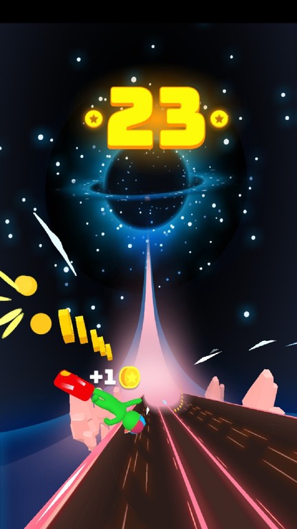 这款游戏简直太酷了!背景设定在一个充满赛博朋克感的城市,跑酷的过程中还能收集金币,感觉自己像一个真正的街头滑板高手。操作简单又刺激,只需要点击屏幕就能完成跳跃和各种动作,配合炫酷的音效,玩起来特别带劲。