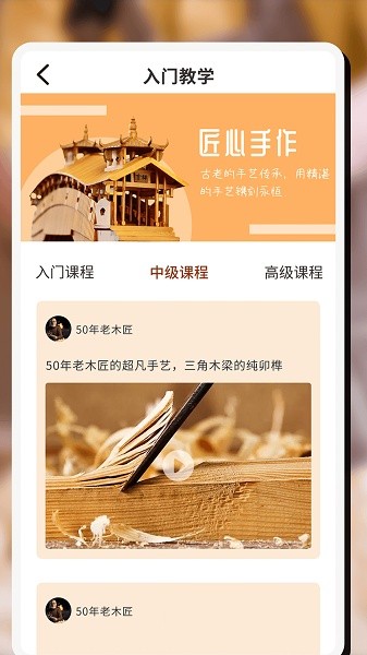 木头师傅是一款木匠学习软件,帮助木工爱好者了解各种木工工具,在线掌握各种常见木工道具的使用方法,自学完成木工的制作技能,软件讲解内容细致,多种多样的在线内容分享,有对木工感兴趣的用户可以下载使用!