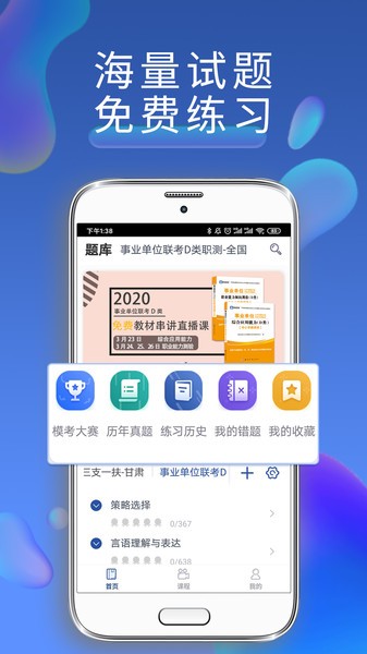 全面支持平板/手机等各种智能设备,简单易用,刷题灵活方便。随时随地在线刷题,充分利用碎片时间,为其他模块复习让出宝贵时间。