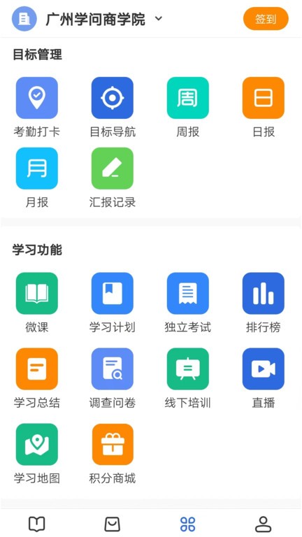 云学问app最新版本主要为企业用户提供培训服务,能够让用户在手机上学习各种课程,包括了管理、营销等,也可以根据岗位来学习专业的技能知识,同时还能进行学习和目标管理,支持员工完成考勤打卡,可以查看详细的数据报表。