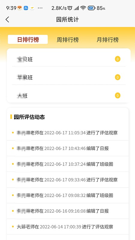 园长还可从管理端中的观察记录,查看老师、班级、园所教学等情况