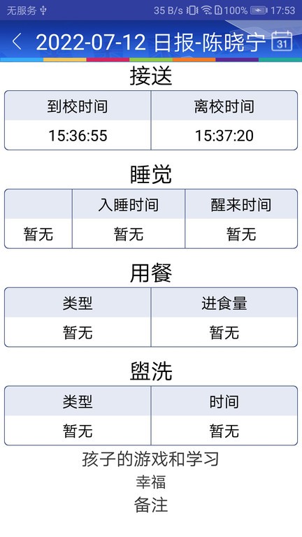 教师发布的日报可随时查看,方便能及时知道孩子的情况;