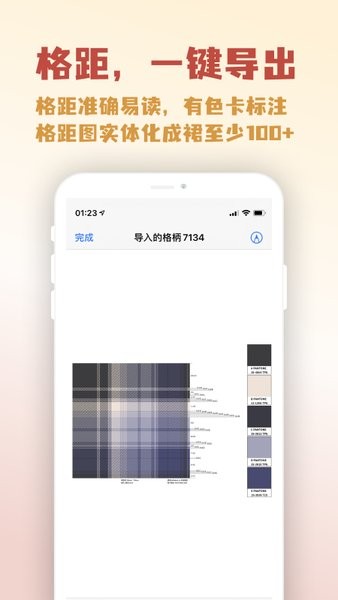 支持出稿所需要的单循环、平铺图、对格图、格距图、样机图、psd源文件的导出。支持放大缩小画布。支持单循环、平铺、对格三种视图切换预览画格效果。支持通过修改线宽和画布大小来修改单循环。支持横竖不同、瓜皮裙、千鸟格等特殊格形。支持快速对色卡,批量改色等功能。