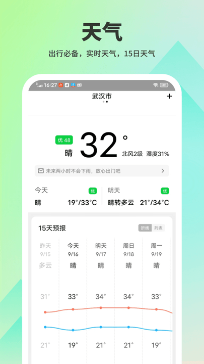 出行必备,实时天气,15日天气