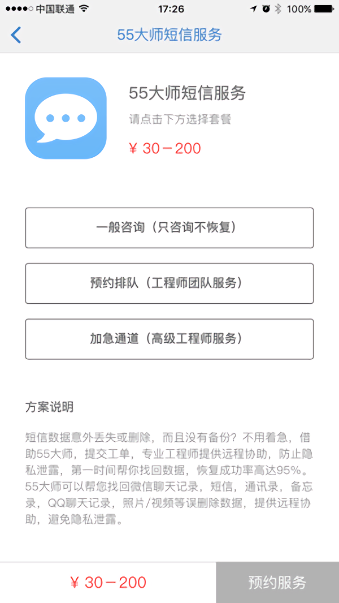 这款“55大师”app听起来挺靠谱的,专门帮人找回丢失的数据文件。最让我觉得方便的是他们的服务模式,比如预约排队和加急通道,这种分类能满足不同用户的需求。特别是加急通道能在短时间内解决问题,这对着急的人来说真的很贴心。