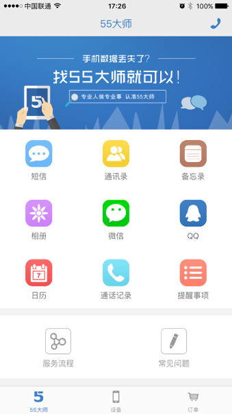 55大师恢复数据,我们力争不错过一个字节。手机数据丢失了?找55大师就可以。