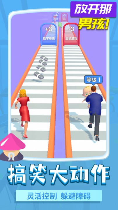 放开那男孩首页是一款超休闲跑酷玩法的小游戏。玩家在游戏中控制孩子的父母将襁褓中的婴儿互相交换,为婴儿创造更好的成长环境,还要为孩子将来的生活努力收集钞票。好的成长环境可以提升孩子在游戏中的等级,在将来获得更好的工作与职位,从而收获较高的收益。而丰厚的收益可以让成年后的孩子购买必备的家具,装饰出温馨居家的家庭。