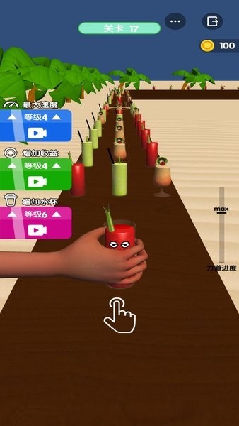 这个《疯狂水杯》最新版真是个有意思的小游戏,简单又刺激。操作就是控制一个水杯在跑道上滑行,路上会遇到各种颜色的杯子,如果收集到同色杯子,水杯就会变大,最后倒出更多果汁,挺有成就感的。