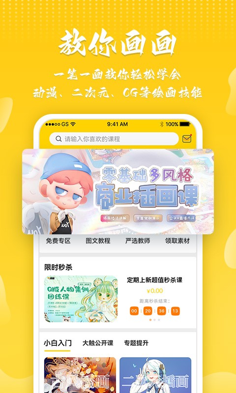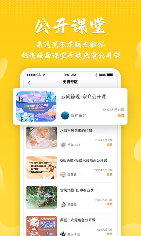 一笔一画认真教您学画画,直播课在线与老师实时互动,问题即问即答,录播课程回放永久保留,随时随地可观看;