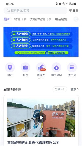 醉三峡人才求职版app,专为广大求职者打造的找工作平台,提供宜昌职位信息,名企云集,线上直招,推荐适合你的知识,随时随地在线面试,轻松找工作。