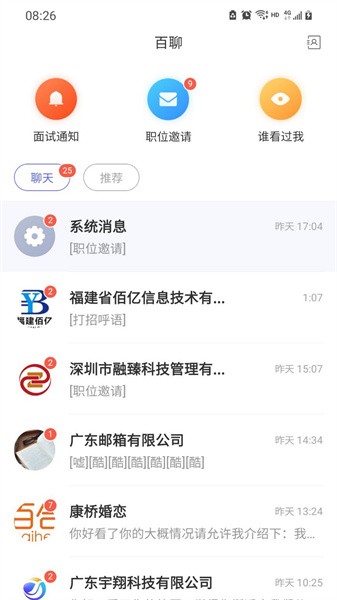 3、随时随地在线都可以与求职者进行交流,让面试更有效率;
