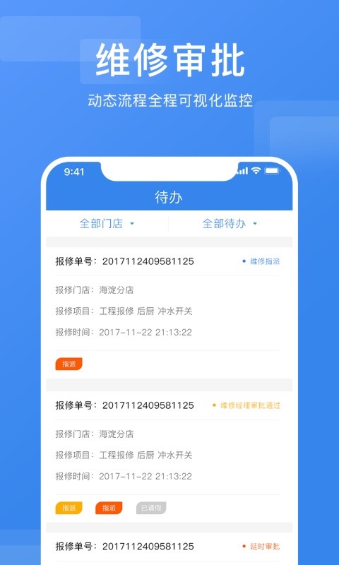 报修审批,在线即可查看到审批进度,轻松的了解到审批信息;