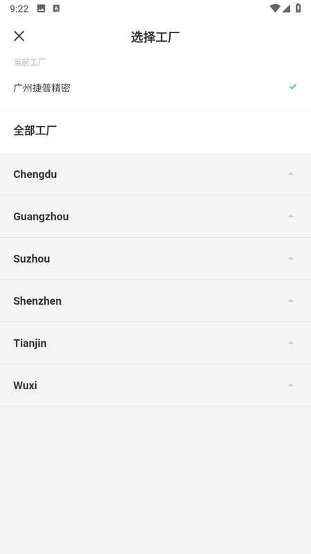 2、多个地区工厂选择,一键在线登录,快速搜索想要的内容