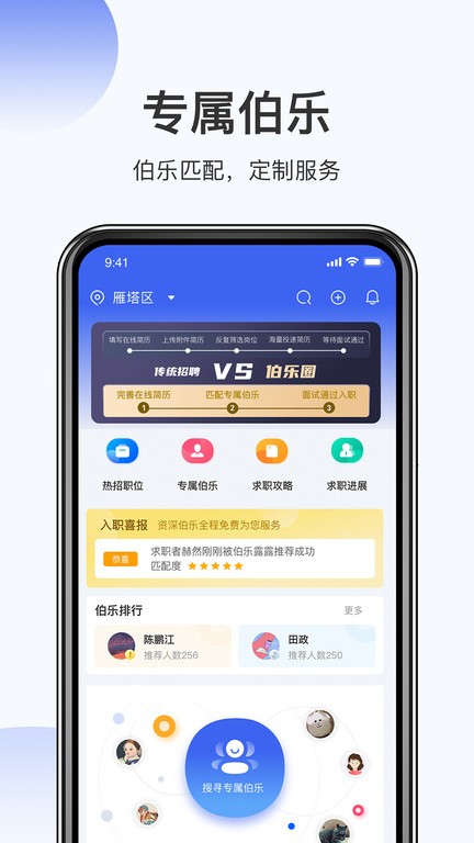 伯乐推荐与智能匹配双管齐下,让求职者快速找到心仪工作,让企业快速找到合适的人才。