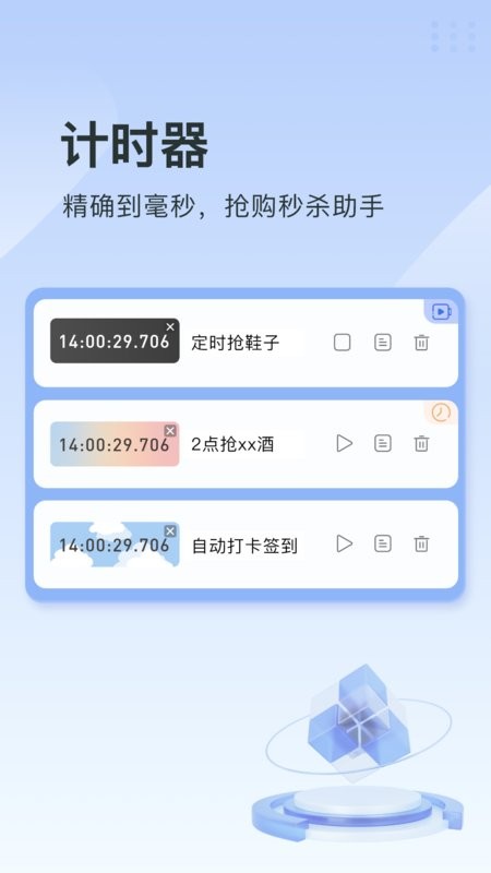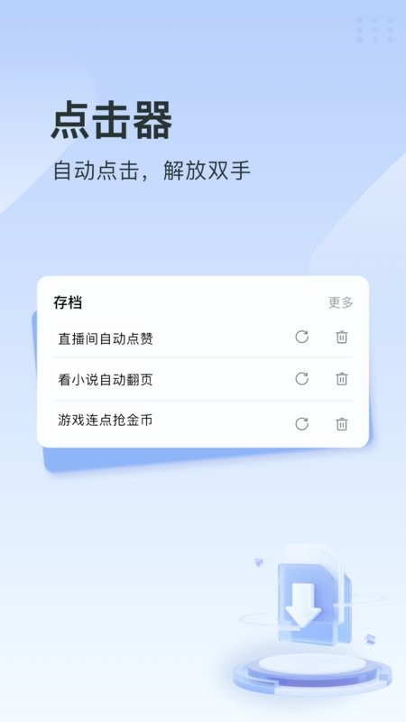 “指尖连点器手机版”是一款好用的手机自动点击工具,功能强大又方便。它就像手机版的按键精灵,可以模拟各种手势操作,比如点击、长按和滑动,还能连续点击和录制脚本,完全解放双手!最棒的是它支持精确到毫秒的计时器,特别适合抢购秒杀的时候用,绝对是你购物神器。