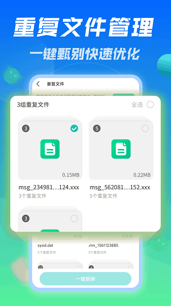 全盘扫描手机垃圾文件,智能化整理文件,一键清除手机垃圾。