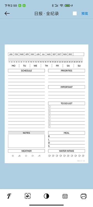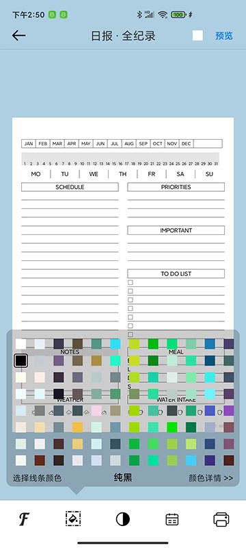 手机a4打印纸app拥有超多实用的纸张模板,不管是上学、办公还是生活中都有非常强的实用价值,可以用来写日程计划、可以用来记笔记和记账,能够根据用途来选择对应的模板,还可以用不同的颜色进行标记哦!