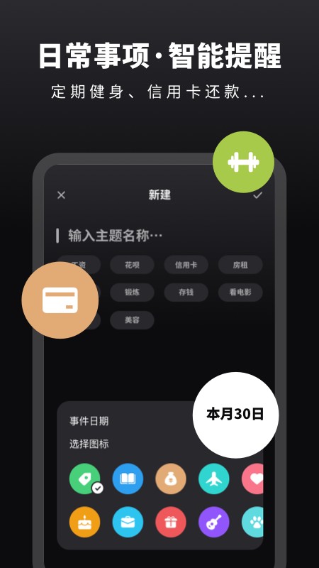 自由选择icon、颜色和分类,帮你快速添加每一件事