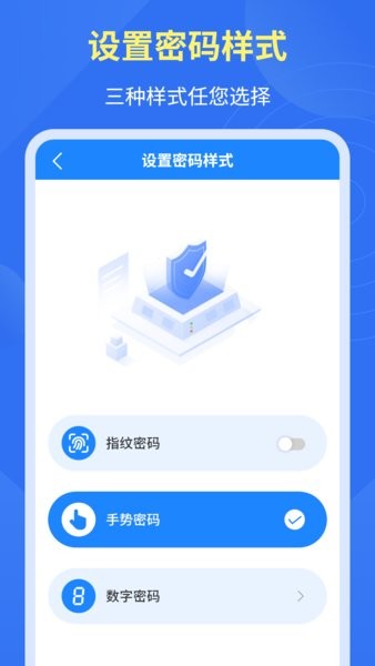 3、自定义设置锁频密码,数字、指纹、图形都可
