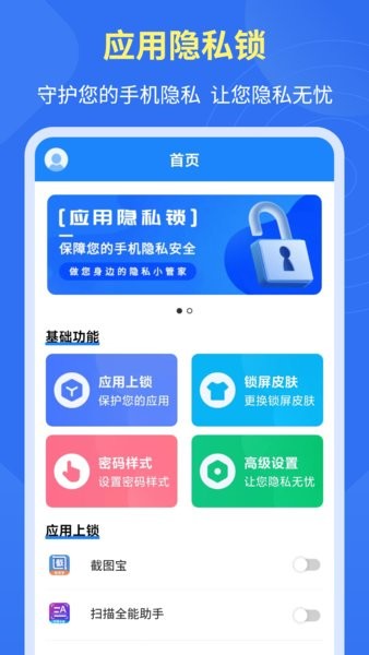 用户可以利用这款软件轻松给各种应用上锁,可以把自己的隐私锁起来,还可以保障自己的隐私不会被其它的软件读取,让你的隐私更加安全!