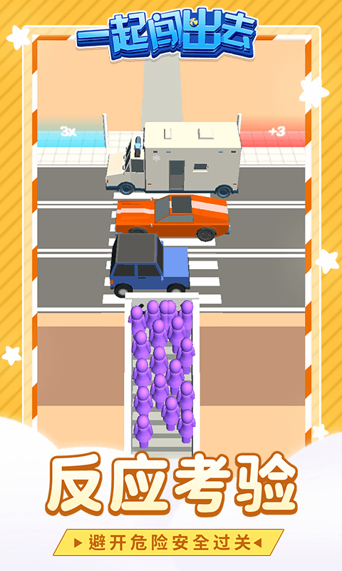 一起闯出去安卓版关卡丰富但玩法简单易懂的一个趣味闯关游戏,在这里玩家需要帮助橡皮人不断穿过马路,来来往往的车辆很危险,观察汽车行驶规律,在遇到空隙的时候及时通过即可胜利。