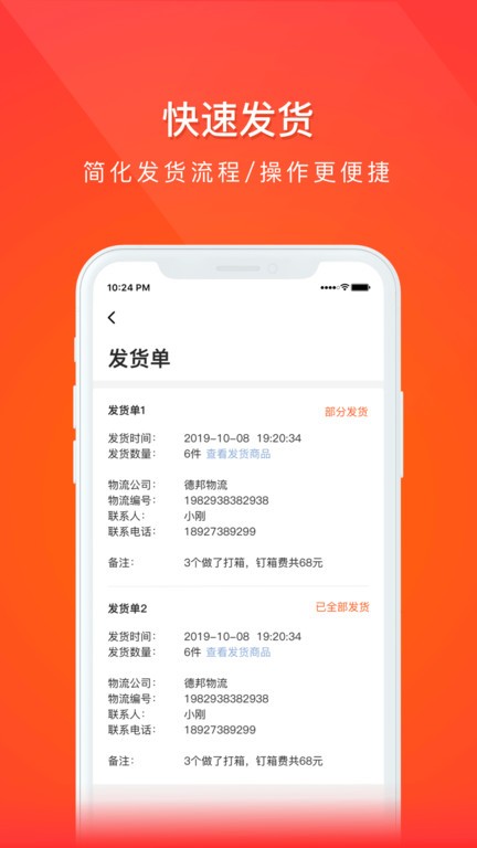 在线即可查看发货单的信息,并选择部分发货或全部发货;