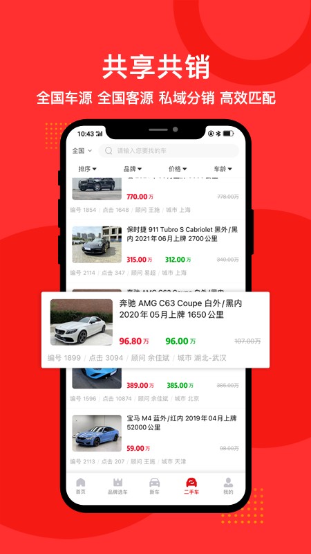 淘车师拥有专业的车源共享共销管理系统,平台整合全国优势资源,召集全国汽车从业者,搭建高效诚信的汽车共享共销体系。加入淘车师告别单打独斗,加强车源与客源合作深度,让收车/卖车都将变得更加简单!