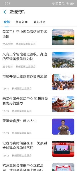 阅读资讯文章,随时进入资讯页面点击文章阅读,了解亚运会的信息;