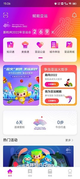 为用户推荐热门的活动,随时参与活动,与更多的人一起参与到亚运会中来;
