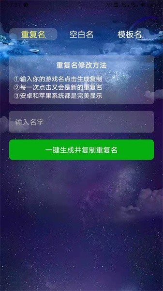 大家可以将自己的游戏名称输入,然后加相应的游戏名称迅速生成,也能够去点击复制。