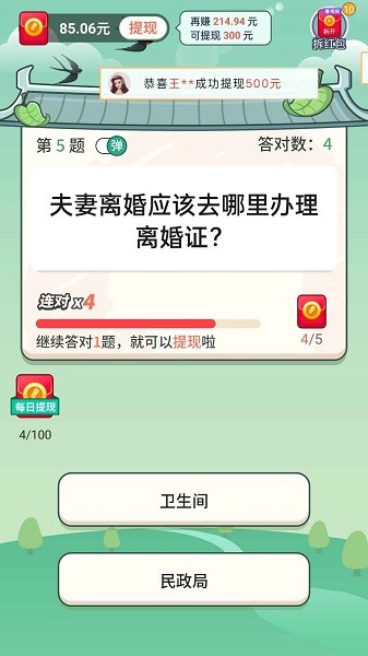 《金榜大学堂》是一款简单有趣的益智软件,用户不仅可以体验各种丰富的题型内容,同时也可以得到奖励红包,不仅能能学习也能赚零花钱。