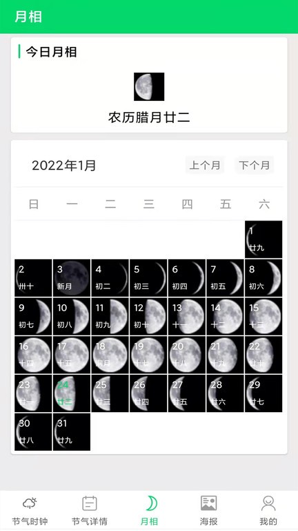 节气日历应用是一个简单易用的日历软件,可以查询农历日期和农历节日,还可以设置节日提醒和重要日期的备忘,可以让百忙之中的我们能时刻记住父母的生日以及亲人重要的日子。