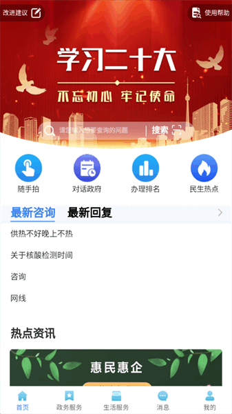 3.政务服务问查约办方便快捷,便民服务医疗住房人社生活公积金应有尽有。