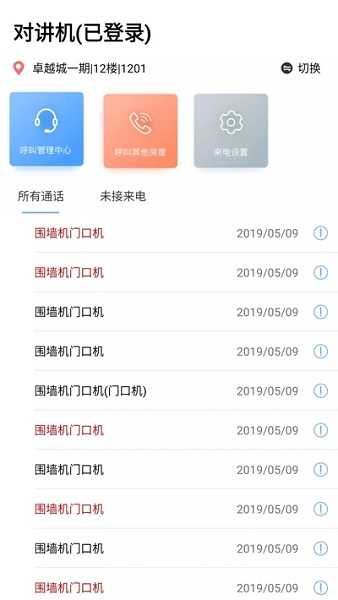 -- 选择对讲机,能够通过平台进行快速与门口机进行通话。