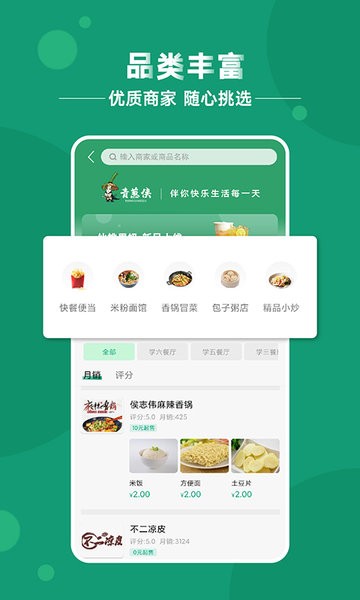 1、青葱侠联合全国各大高校食堂商户,为广大在校师生提供快捷方便的校园外卖服务。