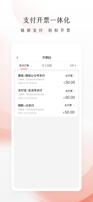 -- 支付开票一体化,链接支付,轻松开票