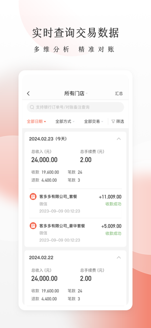 -- 商户分账、结算、到账数据实时更新,订单明细、操作退款功能一应俱全