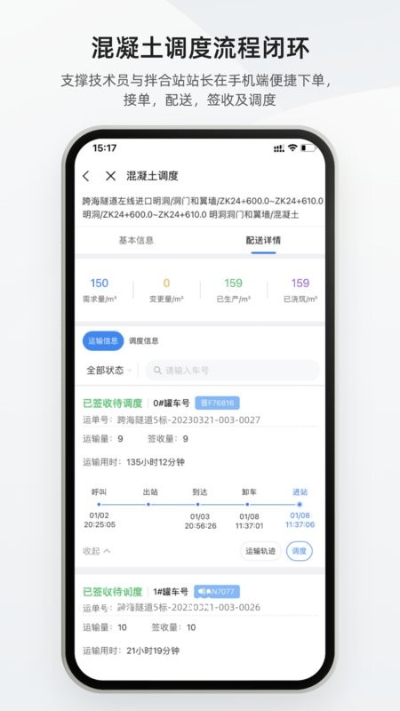 支撑技术员与拌合站站长在手机端便捷下单,接单,配送,签收及调度