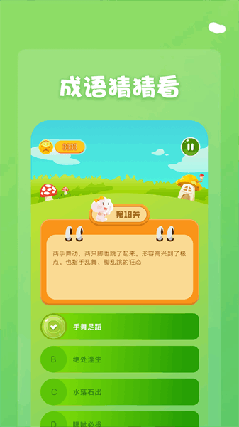 3、轻松上手的操作,特色的挑战模式,与好朋友们一起玩耍体验花式接成语的乐趣;