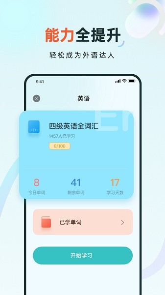 a、应用内提供150+单词供学习,为外语爱好者提供专业的平台;