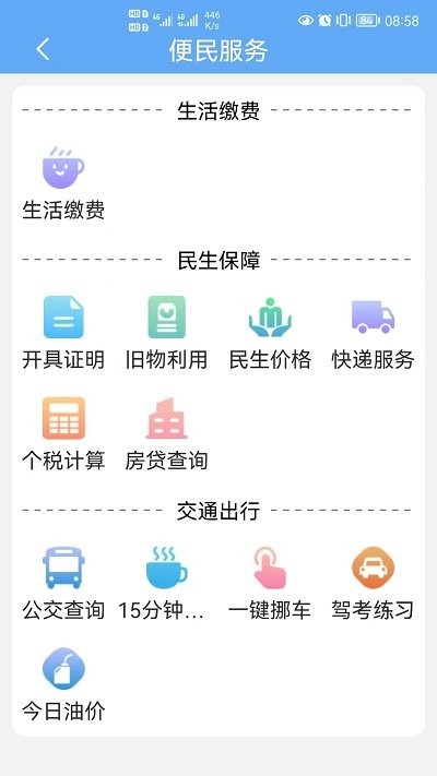 4、交通服务:城际公交购票、实时公交、扫码乘车等