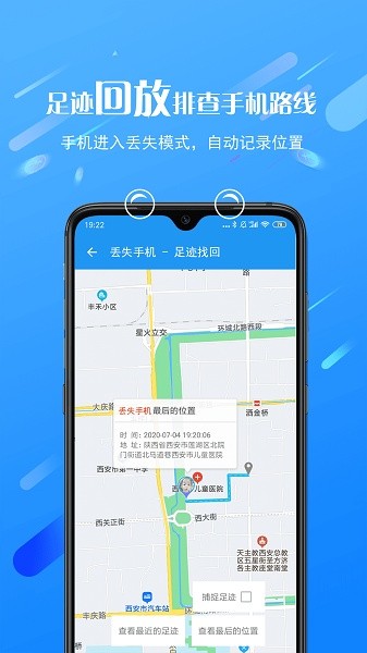 手机防盗:手机丢失后,您可以马上挂失手机,您能马上销毁自己的隐私,同时进入挂失界面帮助您监控盗窃者,协助你找回手机。