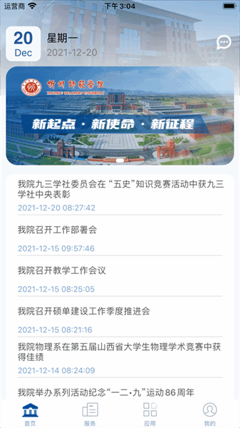 智慧忻师app,一个专门为忻州师范学院的全体师生们打造的校园服务软件,凭借强大的网络技术,构建了智能便捷的校园生活,用户可以在线查看校园资讯、查询课表成绩、进行校园卡充值等,完全实现了电子智能化,让你直接在手机端就能轻松打造精彩校园生活,有需要的朋友快来下载用起来吧~