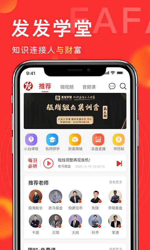 发发学堂是一款专业的金融职业教育软件,由中润教育推出。这个平台致力于普及金融知识,帮助用户提升投资理念,避免踩坑。软件内容丰富,既有理论课程又有实用干货,适合想要学习投资的新手和进阶者。