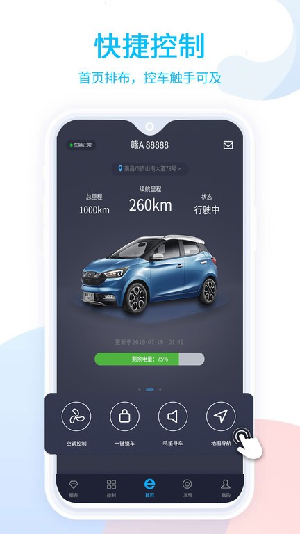 您可坐在家中,使用APP远程控制车辆门锁、车灯、喇叭、空调,实时查看车辆状态并为爱车进行车辆体检。